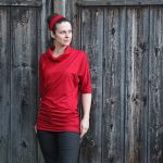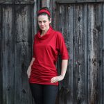 Gemütliches Shirt bzw. Longshirt mit Fledermausärmeln, die viel Luft bzw. Bewegungsfreiheit unter den Achseln zulassen. Der große, weite Rollkragen kann unterschiedlich gekrempelt bzw. gelegt werden.