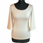 Schmal geschnittenes Basic-Shirt mit schönem Rundhalsausschnitt und weit schwingenden Ärmeln, welche den Ellenbogen umspielen.
